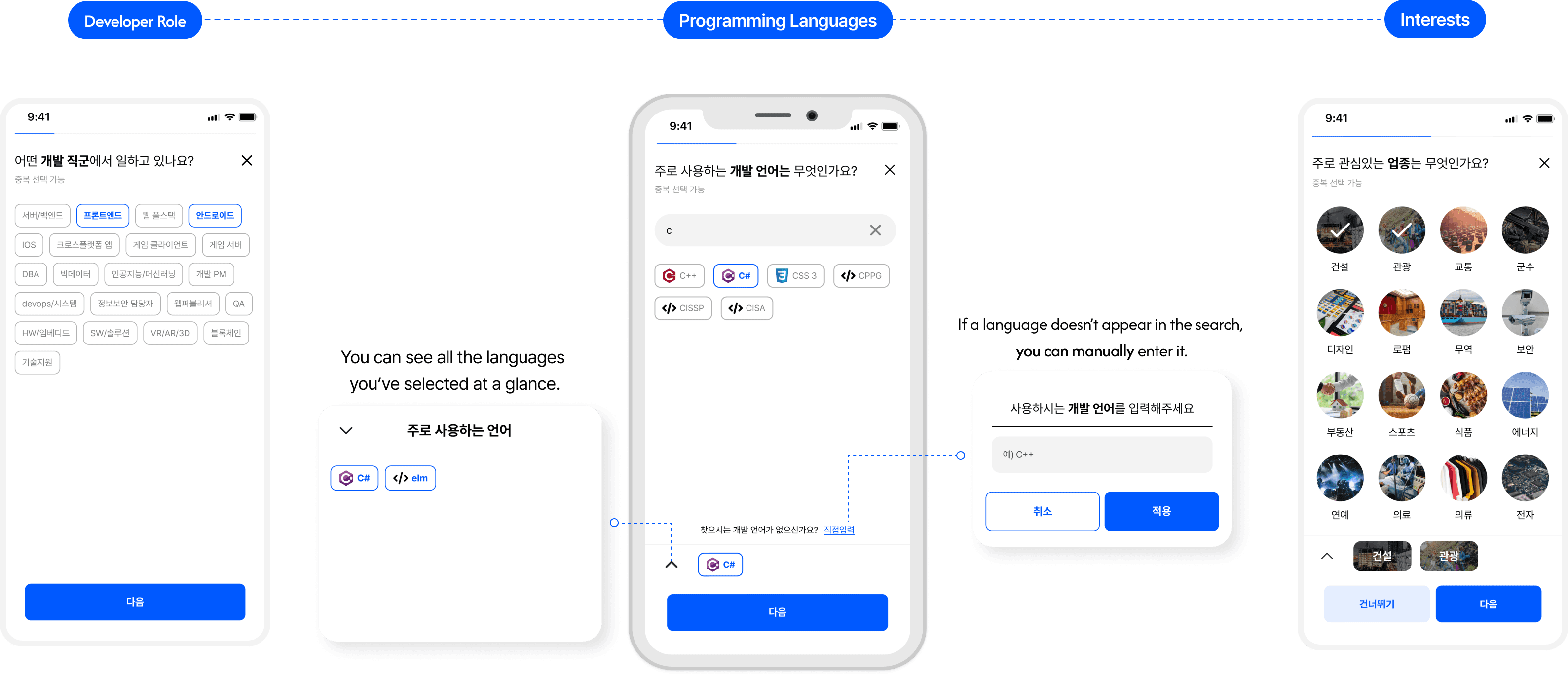 You can configure preferences such as your developer role, programming languages, and even your MBTI type to receive personalized services.